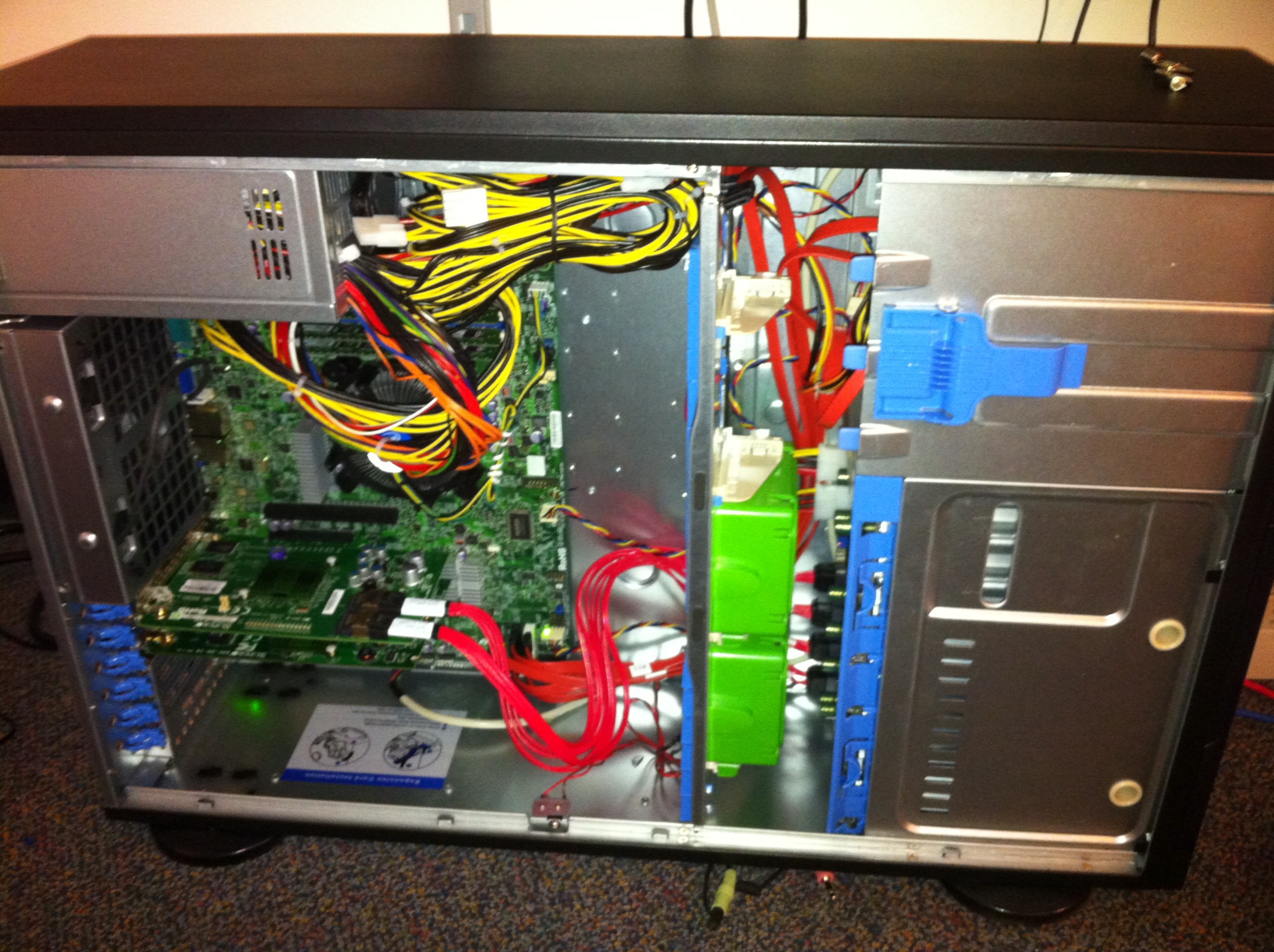 So that covers the parts, build, & case modifications. I got all of this for under $3k, which is not bad considering I now have both a hypervisor & filer to play… er, test with. You could probably do it cheaper if you cut out the SSD’s & substituted the Supermicro case for something smaller. I was eyeing a Fractal Design case, but decided to pay a little more for the better PSU and hot-swap drive bays in the Supermicro case.